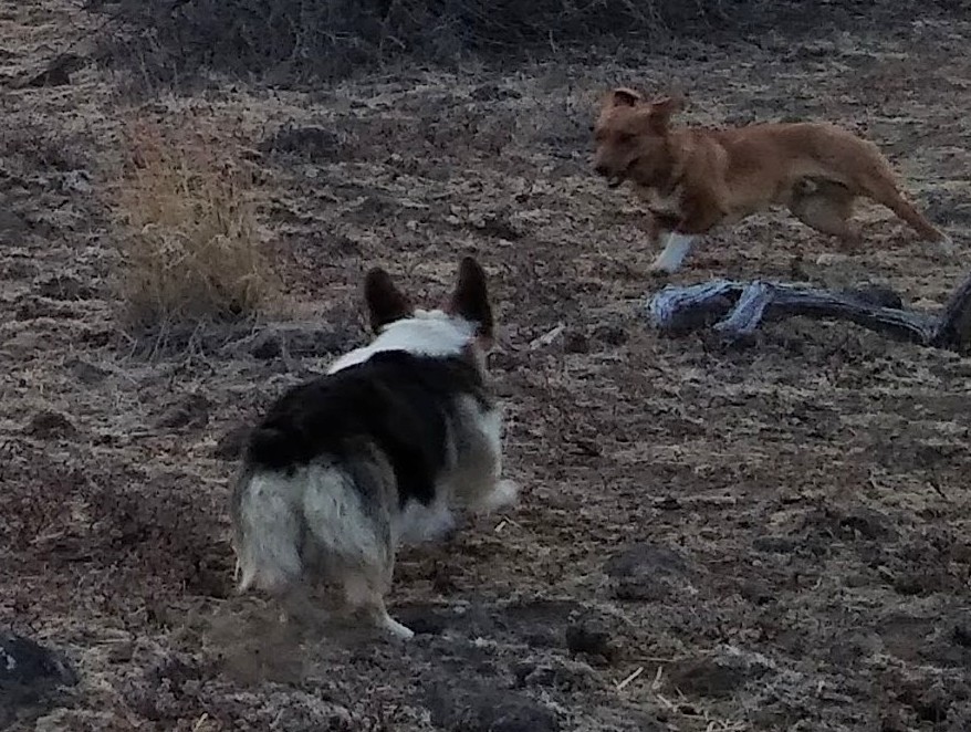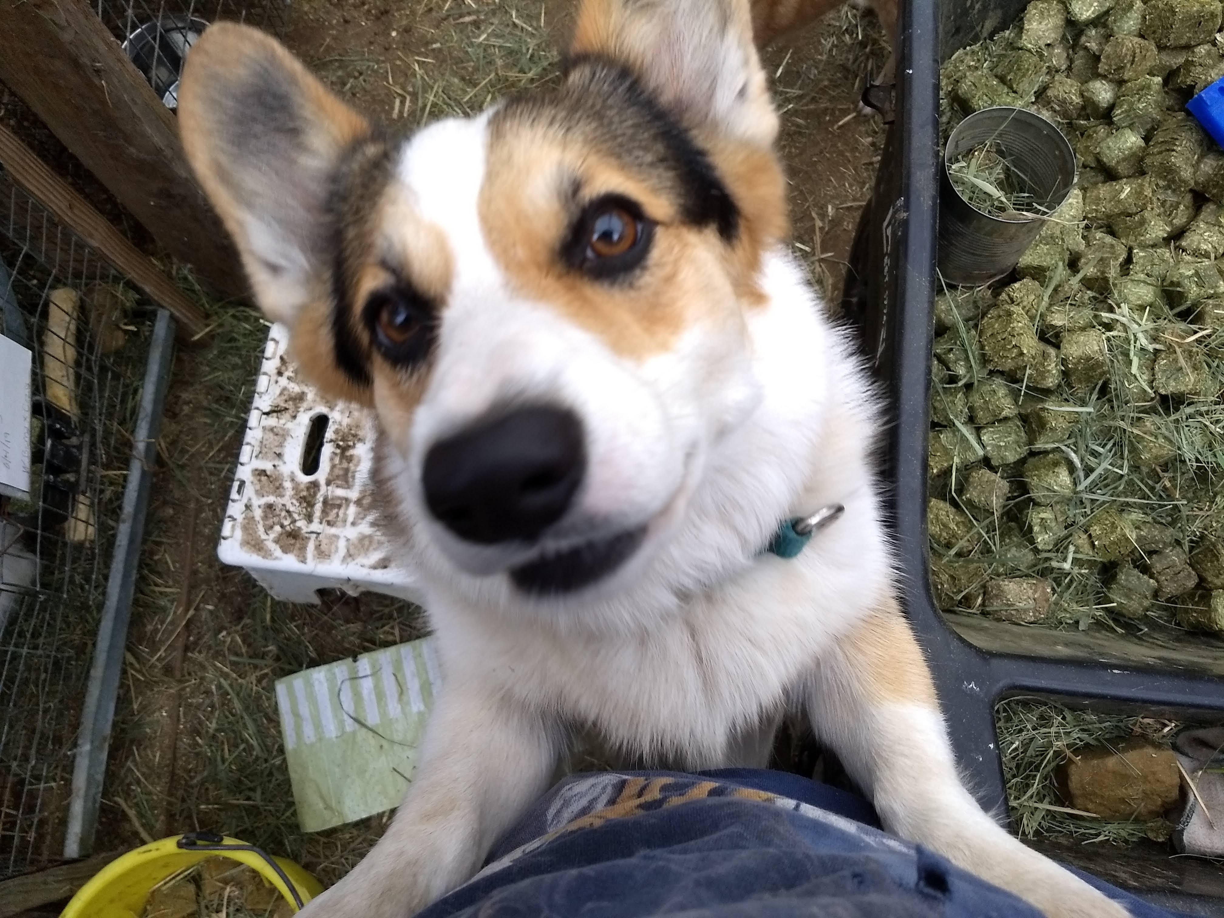 Maen is a paragon of power in motion. He is about 35# of steely muscles, ready to fly into action at a word. From moving the goats out to the pasture or into the fold, protecting the hay cart, cornering and holding an escaped rabbit, or for pure joy of running, he puts his entire physique into the venture.