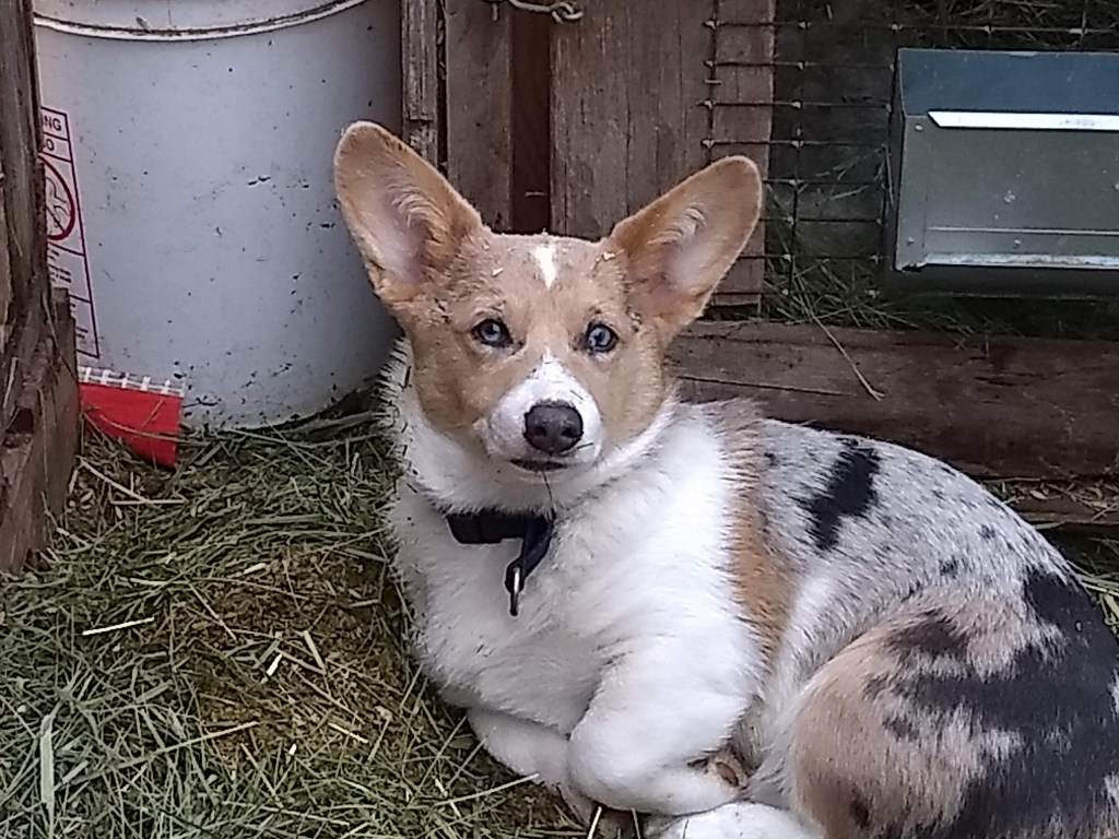 Blue Merle Welsh Corgi, or as some have begun to call the merles in the Corgi world, American Corgis. Natahzi, or Tahzi is nearly 2 years old. She is having her first litter at the end of May, 2021.